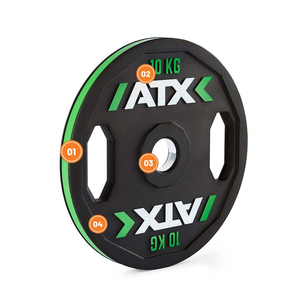 ATX Color Stripe kotouče s úchopy mají robustní litinové jádro, které je chráněno vrstvou špičkového přírodního kaučuku splňujícího nejpřísnější ekologické standardy REACH a RoHS. Díky originálnímu dvanáctiúhelníkovému tvaru, praktickým rukojetím a přehlednému mezinárodnímu barevnému rozlišení vás zaujmou nejen vzhledem, ale i funkčností. Barevný proužek po obvodu okamžitě napoví váhu kotouče. Vnitřní kroužek z nerezové oceli umožňuje rychlou a plynulou manipulaci při nasazování i sundávání závaží. Tyto kotouče jsou perfektní volbou pro klasický silový trénink s volnou činkou nebo pro naložení jiného posilovacího vybavení - nejsou určeny pro odhazování!