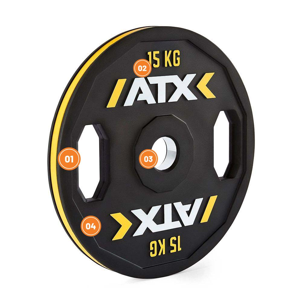 ATX Color Stripe kotouče s úchopy mají robustní litinové jádro, které je chráněno vrstvou špičkového přírodního kaučuku splňujícího nejpřísnější ekologické standardy REACH a RoHS. Díky originálnímu dvanáctiúhelníkovému tvaru, praktickým rukojetím a přehlednému mezinárodnímu barevnému rozlišení vás zaujmou nejen vzhledem, ale i funkčností. Barevný proužek po obvodu okamžitě napoví váhu kotouče. Vnitřní kroužek z nerezové oceli umožňuje rychlou a plynulou manipulaci při nasazování i sundávání závaží. Tyto kotouče jsou perfektní volbou pro klasický silový trénink s volnou činkou nebo pro naložení jiného posilovacího vybavení - nejsou určeny pro odhazování!