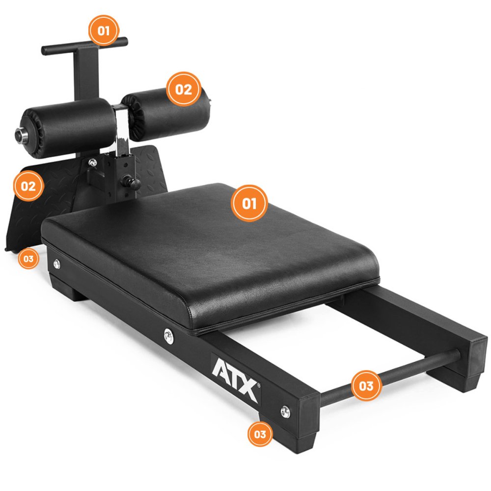 Posilovací lavice ATX Floor Glute určena pro trénink hýždí, hamstringů a spodní části zad. Jedná se o kompaktní alternativu od tradičních lavic GHD. Nízká konstrukce nabízí snadné a bezpečné nalézání, v případě potřeby se lze snadno a bezpečně podepřít rukama a konstrukci lze dokonce postavit vertikálně, čímž ušetříte ještě více místa. Bezpečnostním prvkem je protiskluzová podložka a výškově nastavitelné nožní válečky, které zajišťují pohodlnou a bezpečnou fixaci nohou. ATX Floor Glute je ideální pro začátečníky i pokročilé uživatele a má evropskou certifikaci podle EN 20957 I.II.IV Třída S pro profesionální použití v tělocvičnách.