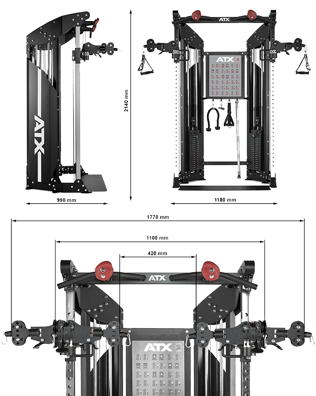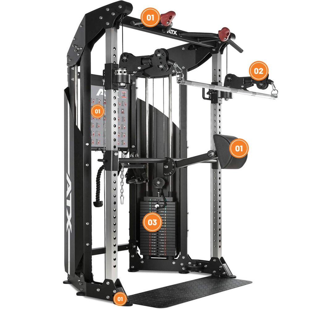ATX Dual Pulley FTO-600 je multifunkční kladkový stroj, který přináší široké spektrum možností pro komplexní trénink celého těla. Na rozdíl od většiny jiných funkčních trenažérů je vybaven dvěma otočnými kabelovými rameny, které umožňují tah v šířce až 177 cm. Výšku tažného mechanismu lze nastavit ve 32 různých polohách. Ramena jsou pohyblivá, což umožňuje nastavení mimořádně širokého rozsahu tahu. Součástí tohoto zařízení je také řada příslušenství, včetně podpěrného polštáře (Support Pad), který umožňuje přesné umístění a fixaci těla pro správný a bezpečný trénink.
