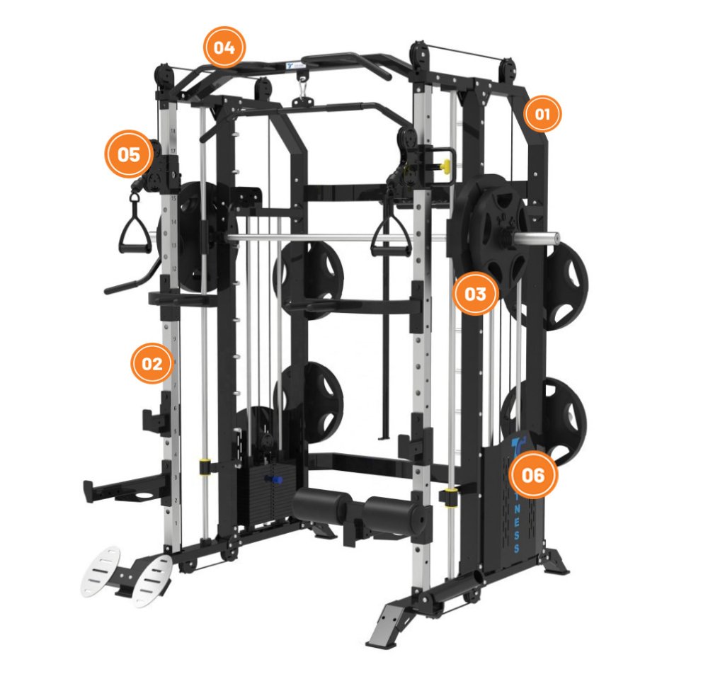 Tento multifunkční posilovací stroj od IRONLIFE je kompletní tréninkový systém, který obsahuje inovativní strukturu. Kombinuje tak trénink a posilování různých svalových skupin a provádění komplexních cvičení. Toto komerční zařízení je vyrobeno z ocelového rámu ošetřeného práškovým lakováním zvyšující odolnost proti korozi. Ocelová lanka s pevností v tahu 2 000 lb zaručeně vydrží intenzivní a dlouhodobé používání.