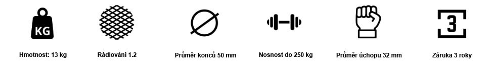 Kompaktní otevřená HEX osa ATX vyniká svým inovativním designem, který zajišťuje maximální volnost pohybu při cvičení. Neutrální úchopy zpřístupňují mrtvý tah i méně zkušeným sportovcům a výrazně zvyšují komfort oproti tradičním činkám. Otevřená konstrukce navíc rozšiřuje možnosti tréninku o další cviky jako výpady nebo přítahy v předklonu. Osa měří na délku 1500 mm a využitelná plocha pro odkládání závaží má rozměry 255 x 50 mm. Konstrukce je vyrobena z odolné, silnostěnné oceli a zvládne zátěž až 250 kg.