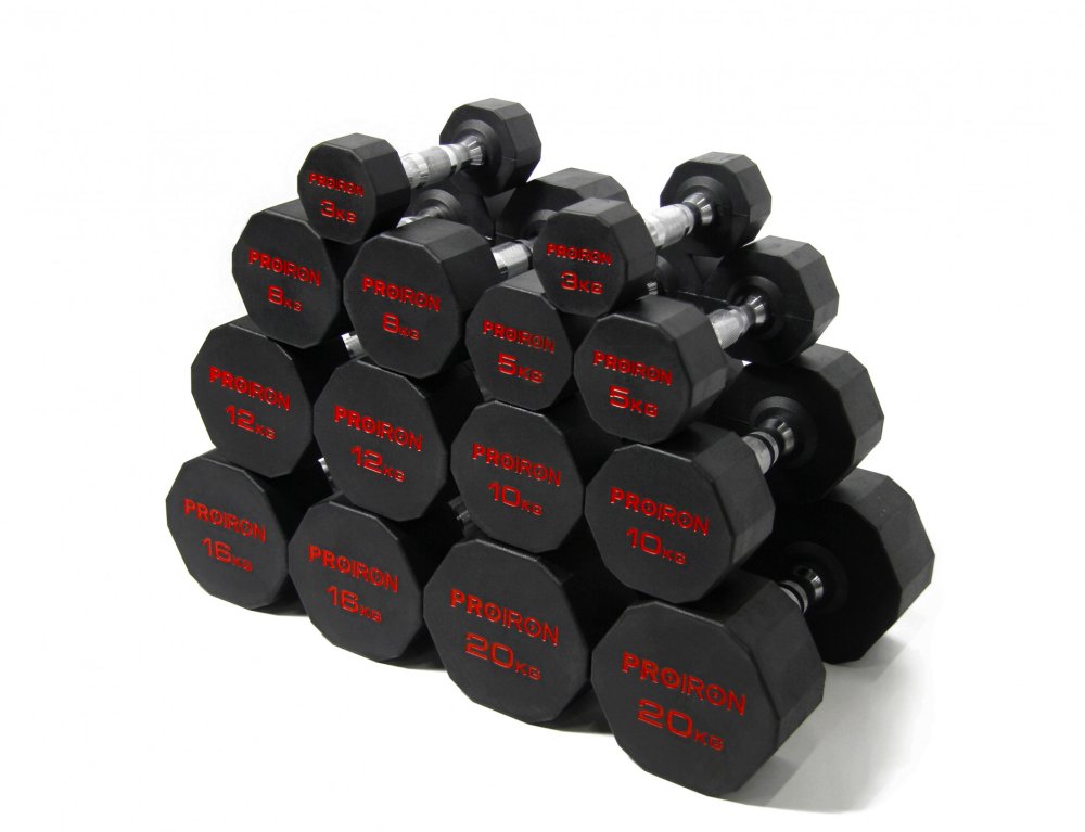 Pogumované jednoruční činky PROIRON 3 - 20 kg (7 párů)