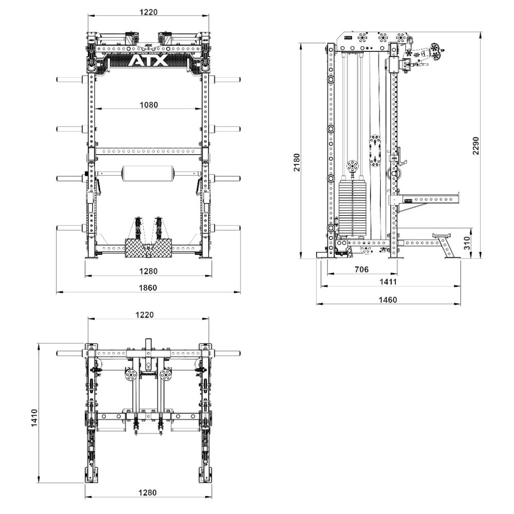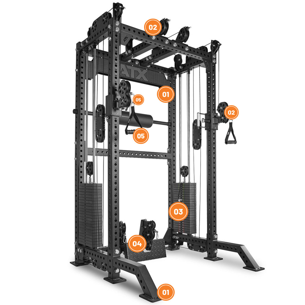 ATX Multi Pull Half Rack MPHR-740 představuje víceúčelový stojan na dřepy, který spojuje lat pulldown a low row stanici. Je navržen tak, aby poskytoval maximální variabilitu a efektivitu cvičení. Systém kladek je propojen dvojicí závaží o celkové váze 110 kg a nabízí převodový poměr 2:1.