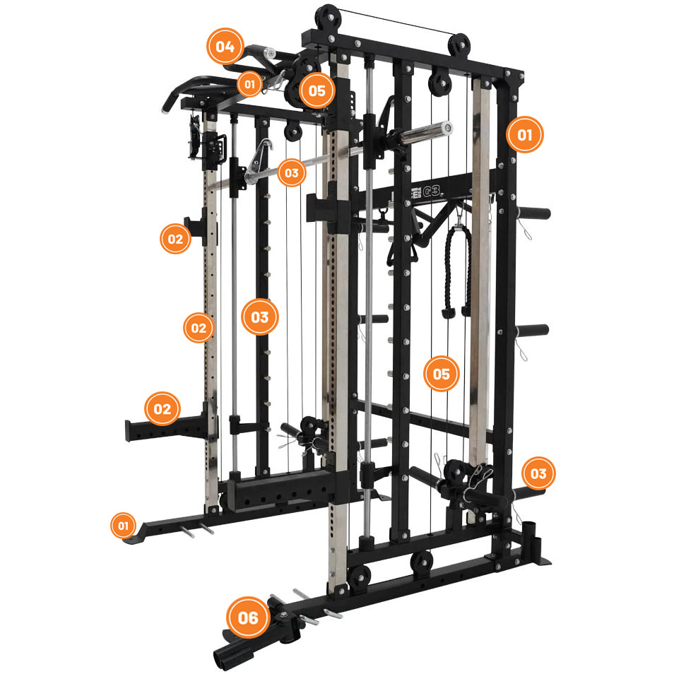 S G3 budete mít možnost provádět všechna stejně efektivní cvičení, která byste dělali v komerční posilovně. Tento stroj kombinuje několik stanovišť, jako je power rack, functional trainer, smith machine, chin-up, suspension trainer a core trainer. Díky prostorově úspornému designu můžete pohodlně provádět všechna cvičení na jednom místě. G3 je nabitý funkcemi a obsahuje mnoho adaptérů, nástavců a cvičebních možností, které vám pomohou přizpůsobit každý trénink vašim potřebám. Ať už chcete maximalizovat svůj tréninkový prostor nebo posunout svůj trénink na další úroveň, tento posilovací stroj je vaším dokonalým partnerem.