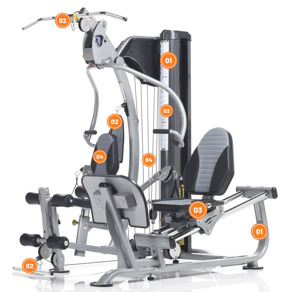 Stroj je koncipován tak, aby nabídl maximum na minimálním prostoru. Ačkoliv je konstrukce dostatečně masivní a stabilní, aby bylo možné stroj použít i v hotelových a klubových posilovnách, stroj zaujme svými kompaktními rozměry. Před cvičením si stroj můžete přizpůsobit podle vašich fyzických potřeb. Snadno nastavíte výšku sedáku, polohu opory zad i zátěž, se kterou jednotlivá stanoviště budete odcvičovat.