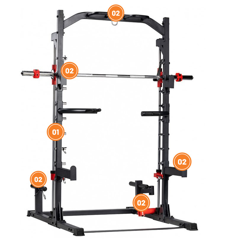 Profesionální konstrukce Smith Machine značky IRONLIFE je multifunkční posilovací stroj, který přináší řadu možností pro komplexní a intenzivní cvičení. Robustní a velmi odolná konstrukce zajišťuje absolutní stabilitu a maximální zatížení do 200 kg. Součástí konstrukce jsou odnímatelné J-háky a bezpečnostní zarážky, které lze doplnit o další volitelné příslušenství pro další rozmanitost cvičení. Masivní stojan je vyroben z vysoce kvalitní ocelové trubky o tloušťce 3 mm opatřenou práškovým nástřikem, který předchází případné korozi. Tento stroj se dokonale hodí do jakékoli domácí posilovny nebo komerčního prostředí.
