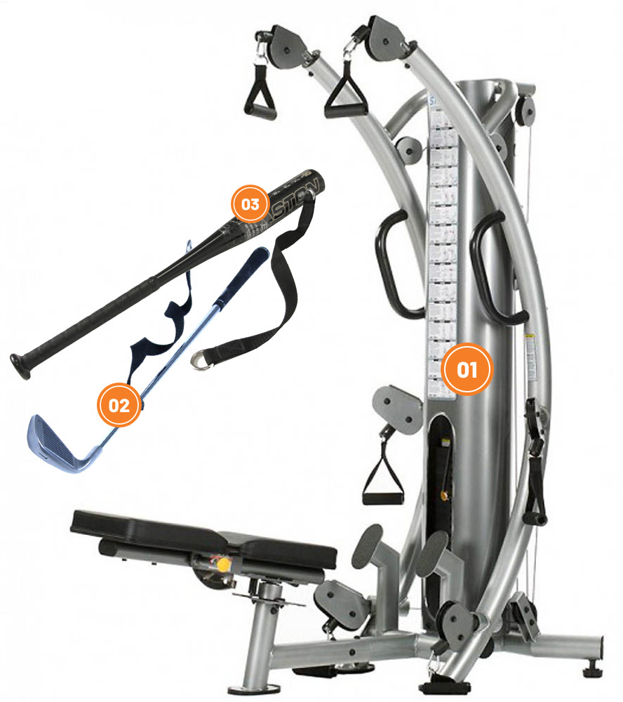 Posilovací stroj TUFF STUFF SIX - PAK, Golf handle, Baseball handle