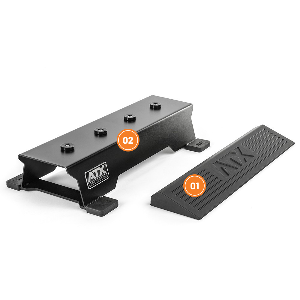 ATX ® squat block stupínek umožňuje optimalizované držení těla horní části těla během squat cvičení a odlehčuje záda a kotníky. ATX ® Wadenb lock je velmi robustní blok s vysokou stabilitou a nabízí volnost pohybu.